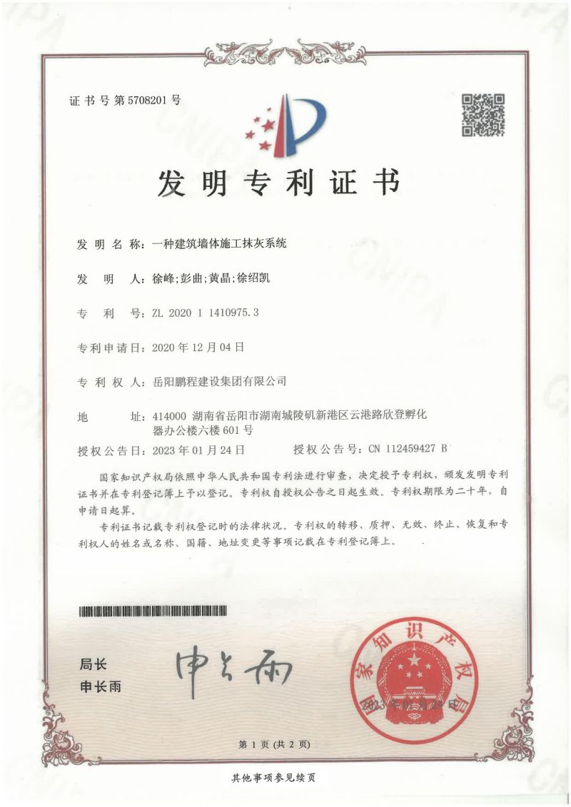 一種建筑墻體施工抹灰系統(tǒng)(徐峰、彭曲、黃晶、徐紹凱)